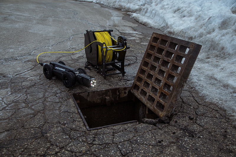 PIPE TREKKERは150mmの小口径パイプから対応可能。最大50mの水深でも稼働する耐水性と堅牢なボディを兼ね備え、過酷な環境でも確実な点検を実現。高精細カメラと直感的な操作性で点検業務をより効率化します。
